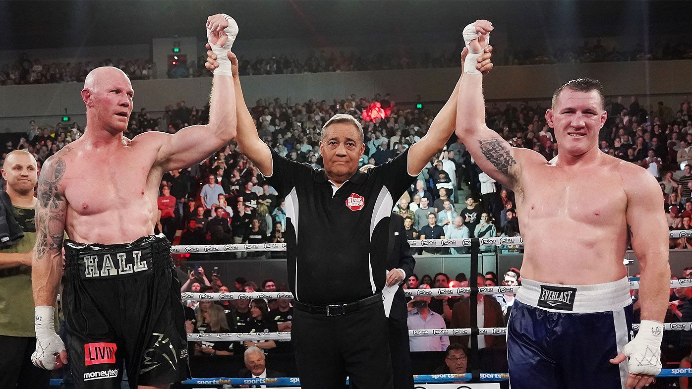 Paul Gallen V Barry Hall Code War Boxing Bout Ends In Draw In Melbourne Abc News from live-production.wcms.abc-cdn.net.au Heavyweight (over 200 lbs, 90.7 kg) result: Sporting news australia 1 week ago. Margaret court arena, melbourne, australia. Barry hall vs paul gallen press conference | highlights. While fans will no doubt be keen to see a rematch in sydney and gallen was eager to talk up gallen backflipped on earlier suggestions he would not be interested in catching up for a beer with hall, declaring there is genuine respect between the two. Aussie footy legends barry hall and paul gallen will square off in the boxing ring in november. Paul gallen vs barry hall boxing fight. Barry hall fight video november 07, 2019.